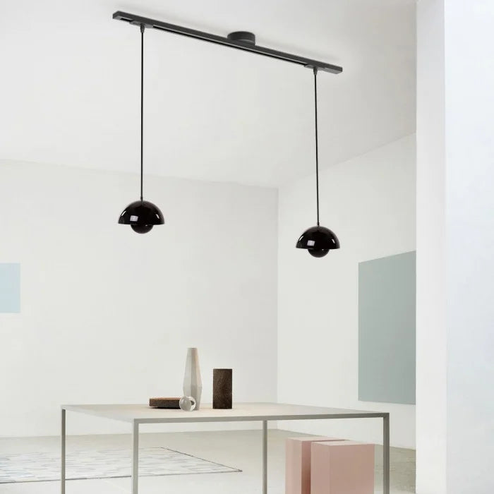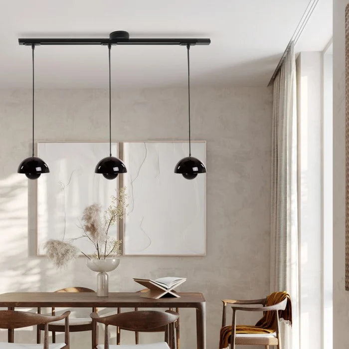 Crafted from metal, the Apollo Swing Arm Pendant Hanging System features 360° rotation and a swing arm design, enabling easy arbitrary pendant placement and light adjustment to enhance space functionality.