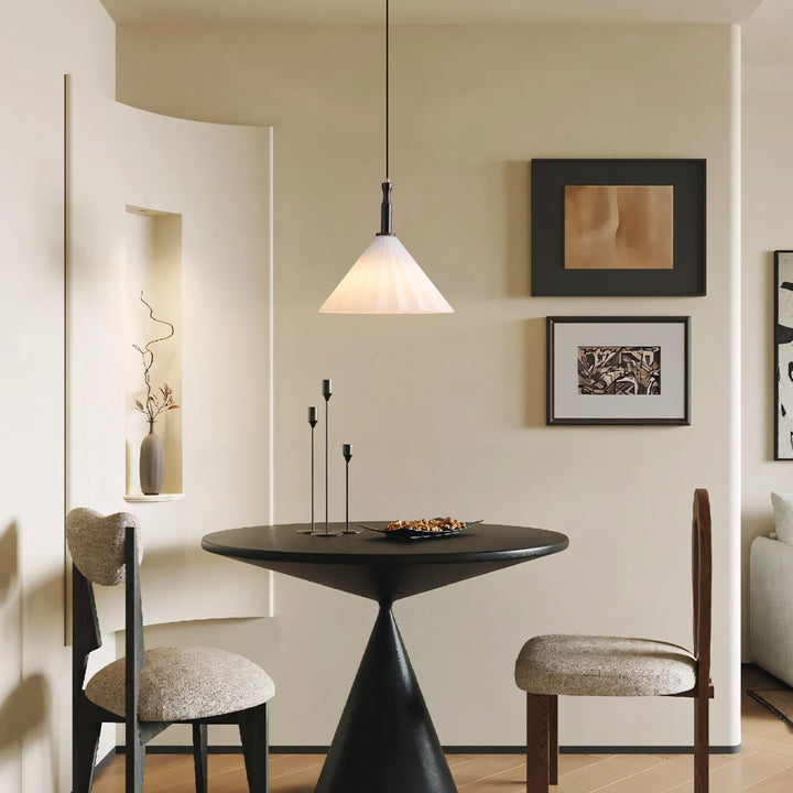 The Freydis Pendant Light features a distinctive conical shape crafted from high-quality white glass. Its smooth, clean lines embody the simplicity and purity characteristic of Scandinavian design. The glass shade diffuses light beautifully, creating a warm and inviting ambiance in your home.