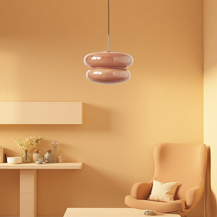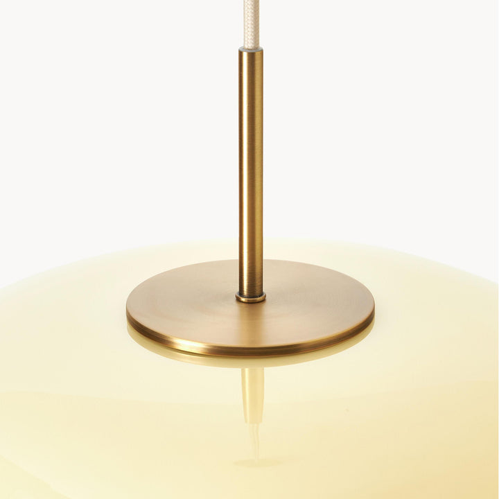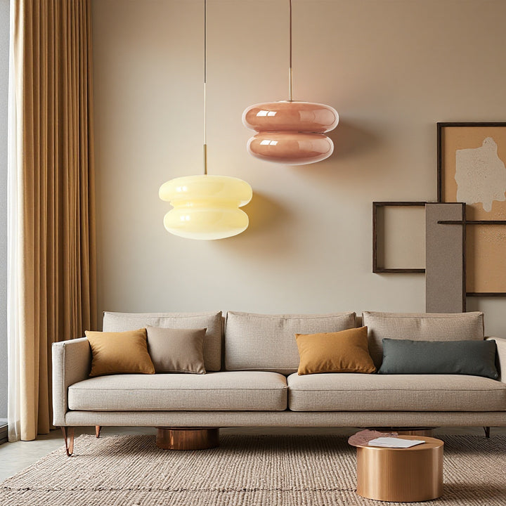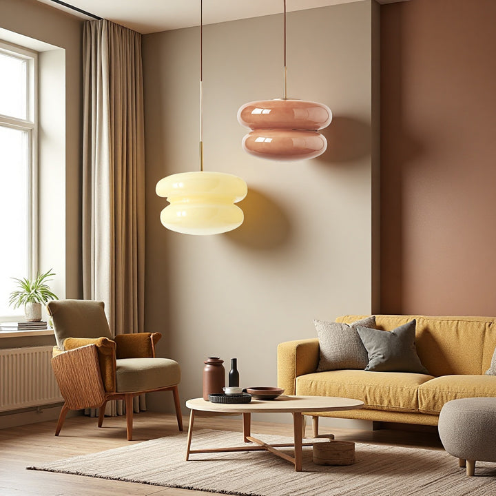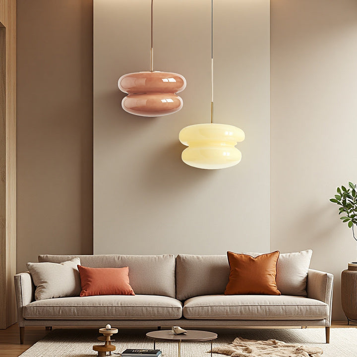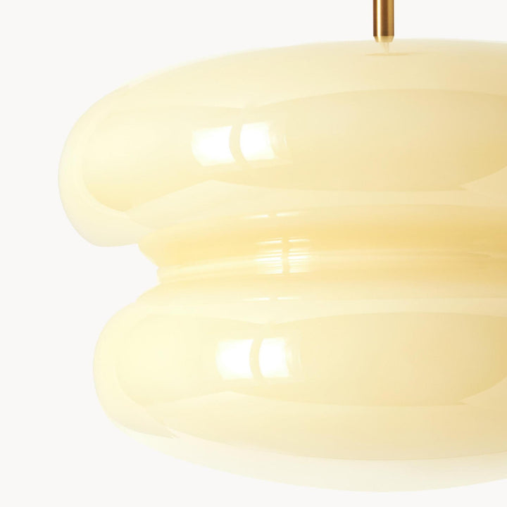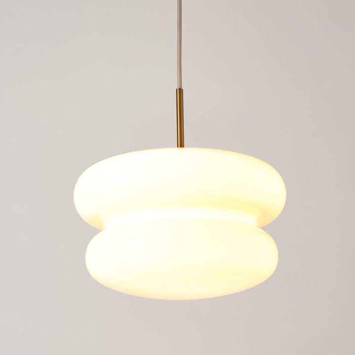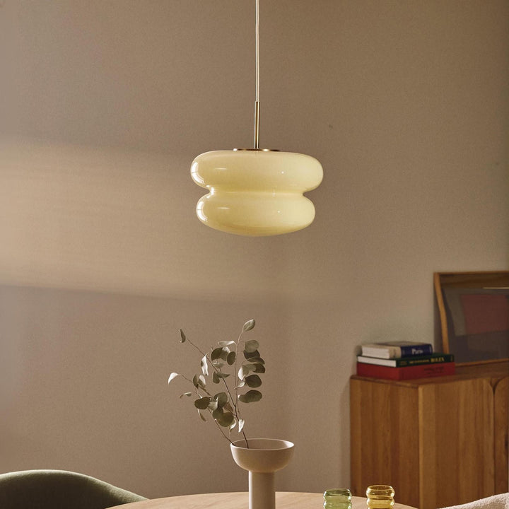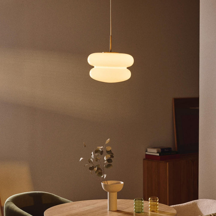 The Cream Bauhaus Opal Glass Pendant Light draws inspiration from Bauhaus design, showcasing a bold, donut-shaped silhouette in high-gloss opal glass. Emitting a soft, diffused glow, it brings playful sophistication and retro charm to dining rooms, kitchens, or lounges. Finished with a sleek cord and brass detail, this pendant seamlessly blends modern style with timeless elegance.